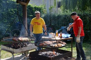 Die Verpflegung will gut bewacht sein , hier u.a. vom 1. Vorsitzenden Thomas Biewald (links).